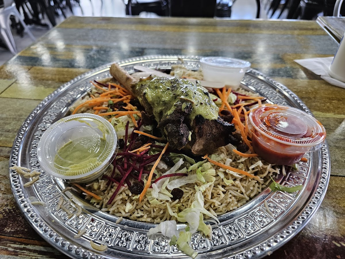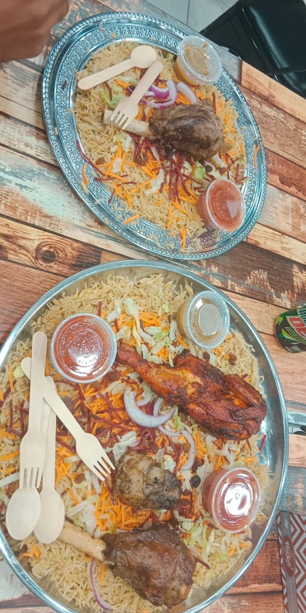 The menu highlights several substantial mains such as Chicken Mandi, Lamb Shoulder, and mixed options combining grilled chicken, lamb shank, and mutton pieces. These are served with mandi sauce and fresh salad, striking a good balance between spice, tenderness, and richness. Large portions and affordable pricing mean you’ll often leave with leftovers, especially if sharing between two or more people, which many locals appreciate for later meals.